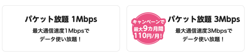 | 月額料金 | 1,650円 (データ専用) 2,000円 (音声通話) | かけ放題 | 5分:500円 10分:700円 24時間:1400円 |