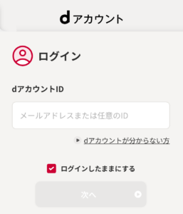 ahamoで使用しているdアカウントのID、パスワードを入力しログインを行い、画面に沿ってMNPの予約の手続きを行います。
