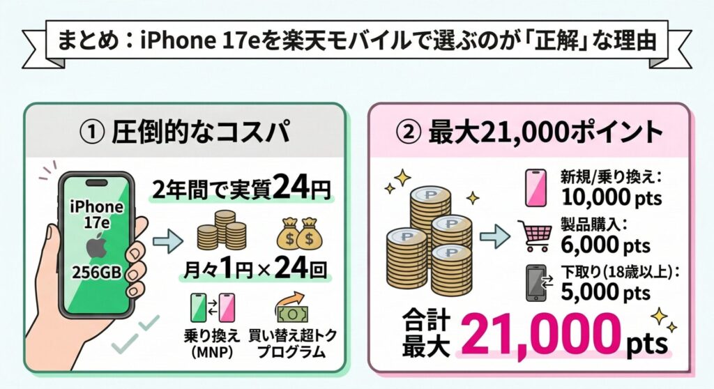 まとめ:iPhone 17eを楽天モバイルで選ぶのが「正解」な理由
