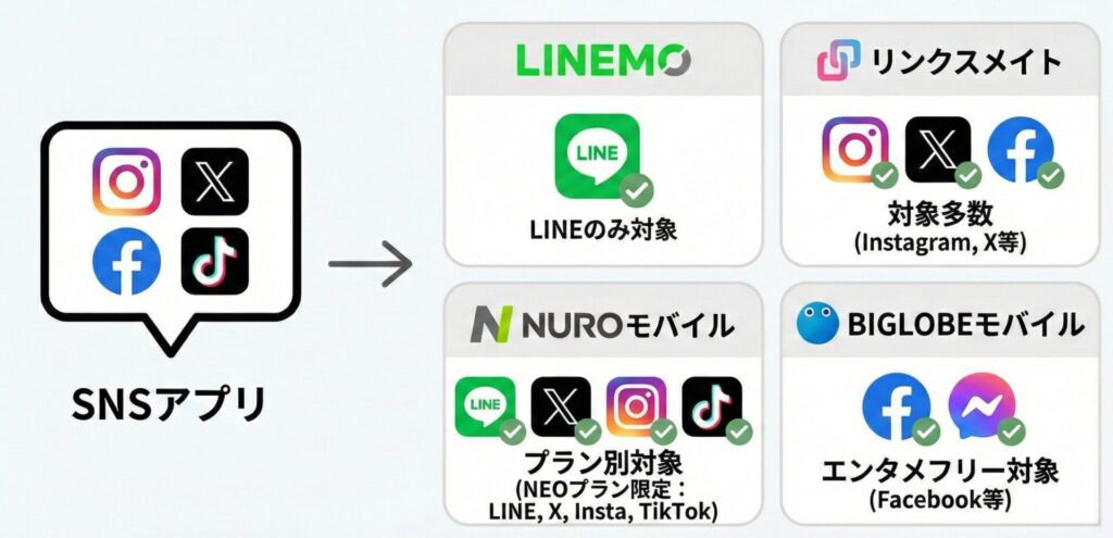 「SNSアプリ」のカウントフリー対応格安SIM
