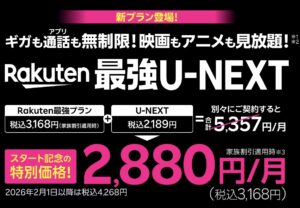 三木谷キャンペーンは新しくスタートしたU-NEXTとのセットプラン「Rakuten最強U-NEXT」を選択した場合もキャンペーン対象となります。→Rakuten最強U-NEXTについての記事