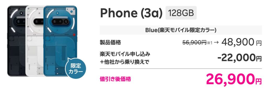 | 市場販売価格 | 楽天モバイル経由なら (他社から乗り換え価格) |