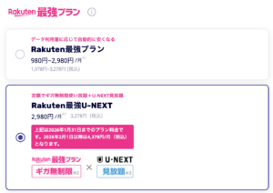 また楽天モバイルで今までワンプランとなっていたRakuten最強プランとRakuten最強U-NEXTを比較すると以下ようになります。